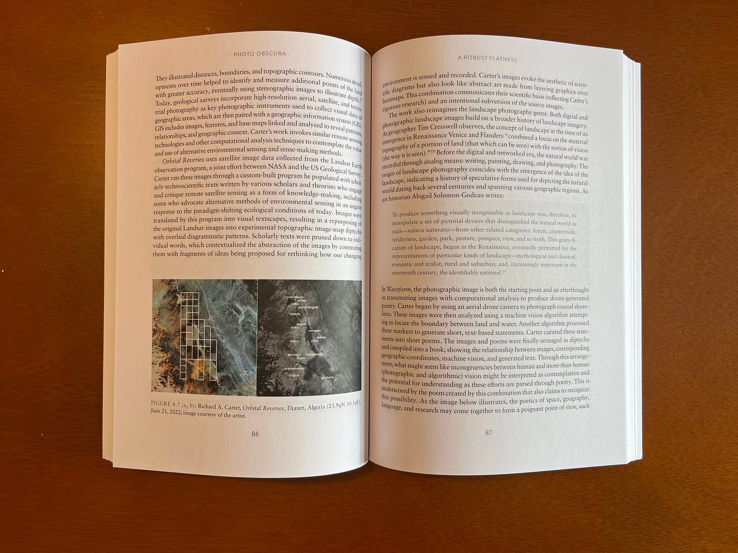 N: Photo Obscura could’ve been written in a number of different ways. I love that about writing! It has an aspect of quantum thinking that encourages one of many paths to take hold. There are a few factors that contributed to this book’s organization. History is a big part of how I think and work, but I’ve never found that my critical observations fit neatly along a linear timeline. Instead, I tend to identify conceptual or perceptual effects that recur across different contexts, and then examine how particular technologies or conditions shape them in distinct ways. That’s the approach I took writing Photo Obscura. I never felt like it could or should follow a chronological arc, even though I reference critical moments in the history of photography throughout. For me, organizing this book’s ideas along a historical progression would have implied a kind of resolution or evolution that doesn’t feel true to what I’m saying about photography, which is that it has always been, in some sense, synthetic. From that perspective, the question for me isn’t whether images are synthetic, but how they come into form: which combinations of technical, material, and procedural processes produce a given image or image object.